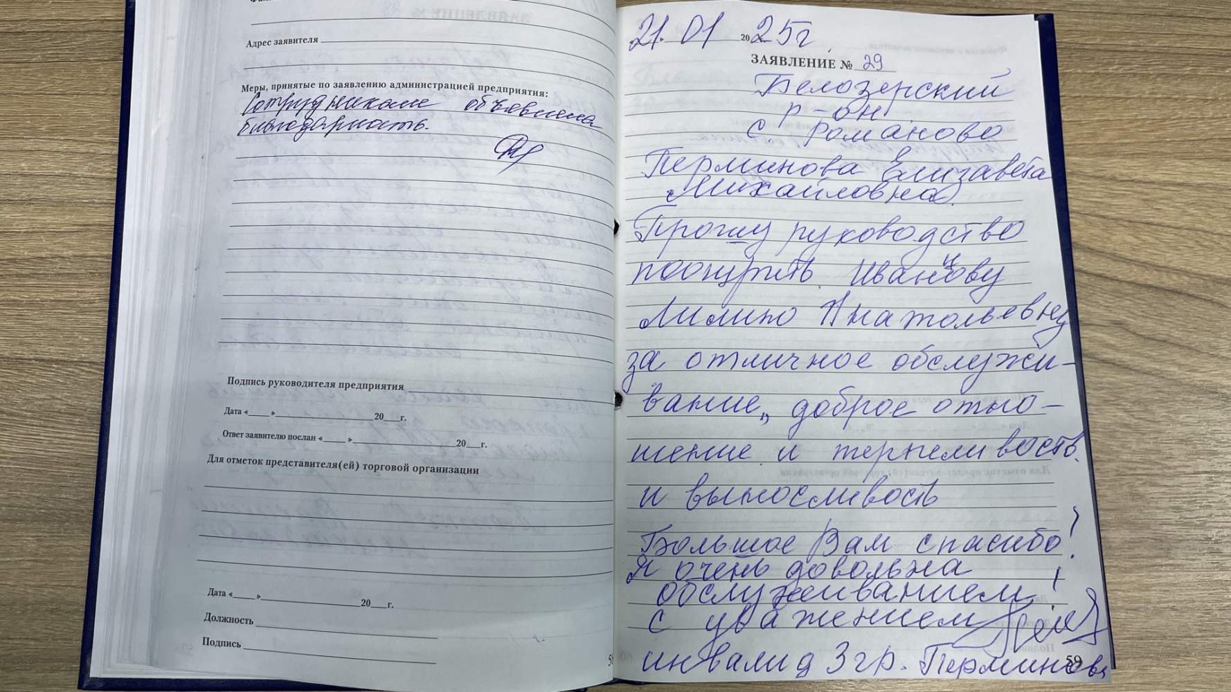 Прошу руководство поощрить . Иванцову Лилию Анатольевну за отличное обслуживание , доброе отношение и терпеливость