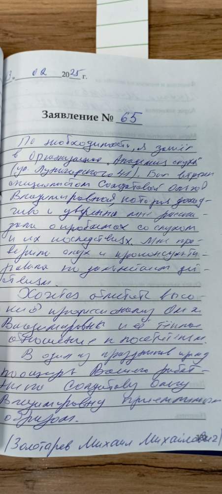 По необходимости, я зашел в организацию «Академия слуха»( ул. Луначарского 41). Был встречен специалистом Солдатовой Ольгой Владимировной, которая доходчиво и уверенно мне рассказала о проблемах со слухом и их последствиях. Мне проверила слух и проконсультировала по дополнительным действиям.