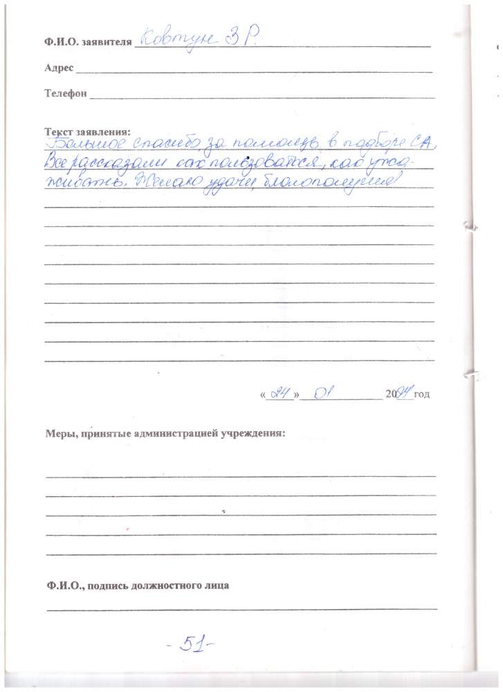 Хочу выразить большую благодарность сотруднику вашей фирмы. все объяснила и рассказала как пользоваться СА, чтобы долго служил