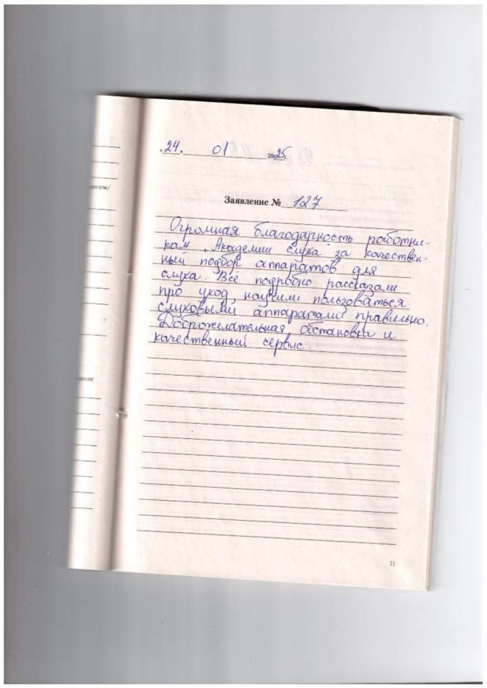 Огромное спасибо сотрудникам Академии Слуха за хорошее и внимательное обслуживание, помогли бабушке с настройкой слухового аппарата.