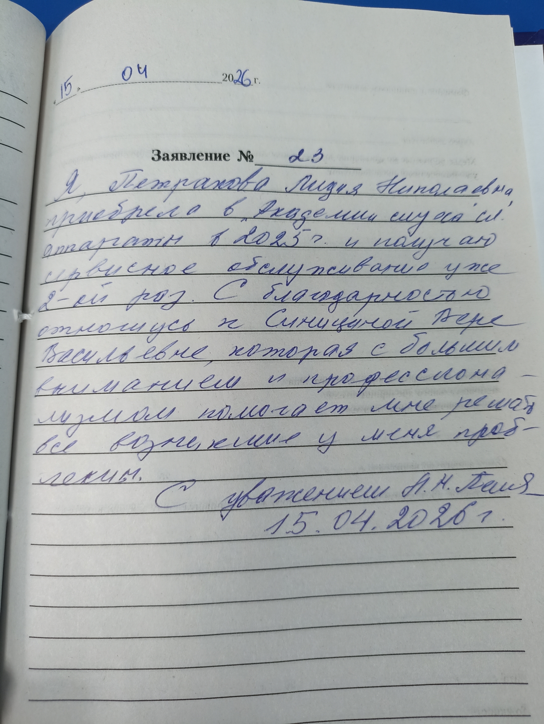 Я, Петракова Лидия Николаевна, приобрела в «Академии слуха» слуховые аппараты в 2025 году и получаю сервисное обслуживание уже второй раз. С благодарностью отношусь к Синицыной Вере Васильевне, которая с большим внимание и профессионализмом помогает мне решать все возникающие у меня проблемы. С уважением, Петракова Л.Н..
