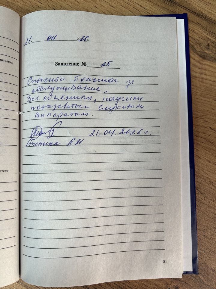 Спасибо большое за обслуживание. Все объяснили, научили пользоваться слуховым аппаратом